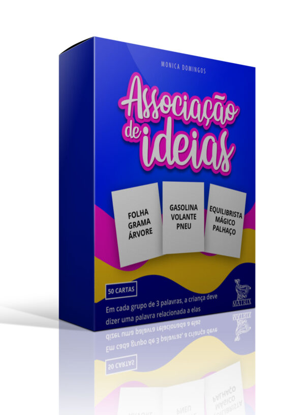 livro-caixinha®. Aqui dentro estão 50 cartas, cada uma com um grupo de três palavras. Basta a criança ler ou você ler para ela e pedir que diga a palavra que está relacionada a essas três. Além de divertida para a família, esta obra estimula as funções mentais complexas, pois envolve a prática de estratégias de memorização por meio de associações verbais, categorização e criação de imagens mentais. É indicada para atividades de terapeutas ocupacionais, assistentes sociais, fonoaudiólogos ou psicólogos.