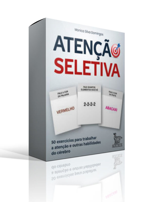 livro-caixinha®. Aqui dentro estão 50 cartas, cada uma com um grupo de três palavras. Basta a criança ler ou você ler para ela e pedir que diga a palavra que está relacionada a essas três. Além de divertida para a família, esta obra estimula as funções mentais complexas, pois envolve a prática de estratégias de memorização por meio de associações verbais, categorização e criação de imagens mentais. É indicada para atividades de terapeutas ocupacionais, assistentes sociais, fonoaudiólogos ou psicólogos.