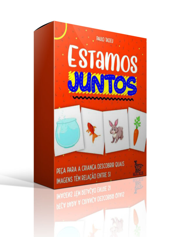Este livro-caixinha® vai desenvolver habilidades de pensamento e raciocínio das crianças de modo muito divertido. Aqui dentro estão 40 cartas com imagens. Elas formam 20 pares. A criança precisa olhar as figuras e descobrir quais têm relação entre si para formar esses pares, como um aquário e um peixinho, por exemplo.